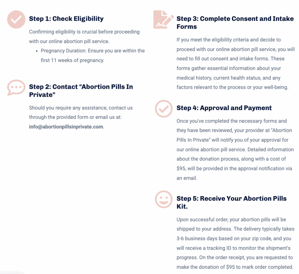 Each package comes with instructions, and Abortion Pills in Private’s website provides more detailed guidance and a video on how to use the medication.